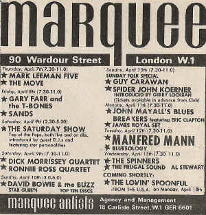 Buzz (10th, 17th, 24th), Manfred Mann (12th), The Objects (14th, 29th), The