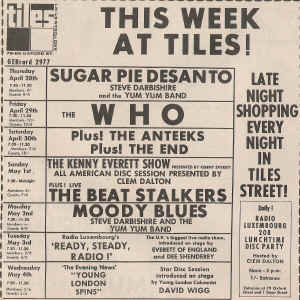 Stevenage-Kinks (6th), The Who (21st), The Yardbirds (27th)