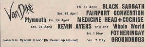 Van Dikes Plymouth-Edgar Broughton Band (3rd), Man (4th), Mott the Hoople (11th), Black Sabbath (17th), Fairport Convention (18th), Medicine Head, Cochise (24th), Kevin Ayers & The Whole World (25th)
