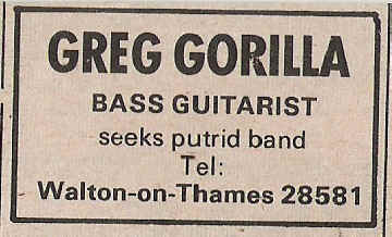 From Melody Maker Classified Ads. I hope he found what he was looking for!