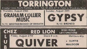 Leytonstone Red Lion- Pink Fairies, Zior (6th), Hawkwind (8th), Stray (15th), Quiver, Curtiss Maldoon (27th), Medicine Head (29th)