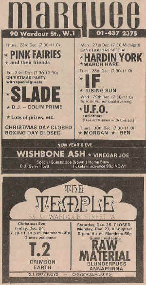 Southall Underworld- T2 (2nd), Home, Gravy Train (9th), Fruupp (16th)