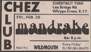 Walthamstow Chez Club-Mighty Baby (6th), Caravan (13th)