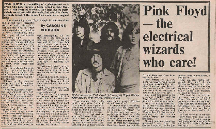 Newcastle City Hall-Pink Floyd (16th), Third Ear Band, Al Stewart (21st), The Nice (28th)