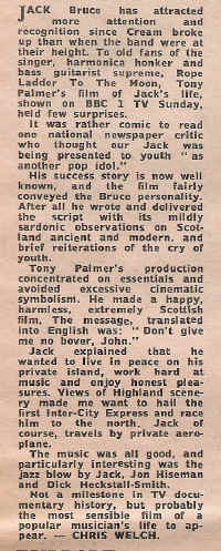 BBC2 TV "Omnibus"-Jack Bruce documentary Rope Ladder To The Moon (1st)