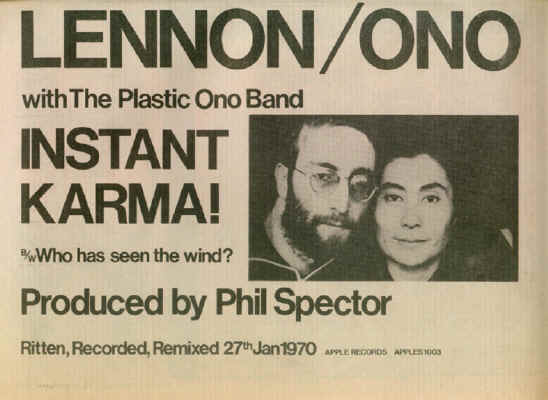 JOHN LENNON/PLASTIC ONO BAND-Instant Karma/ Who Has Seen The Wind