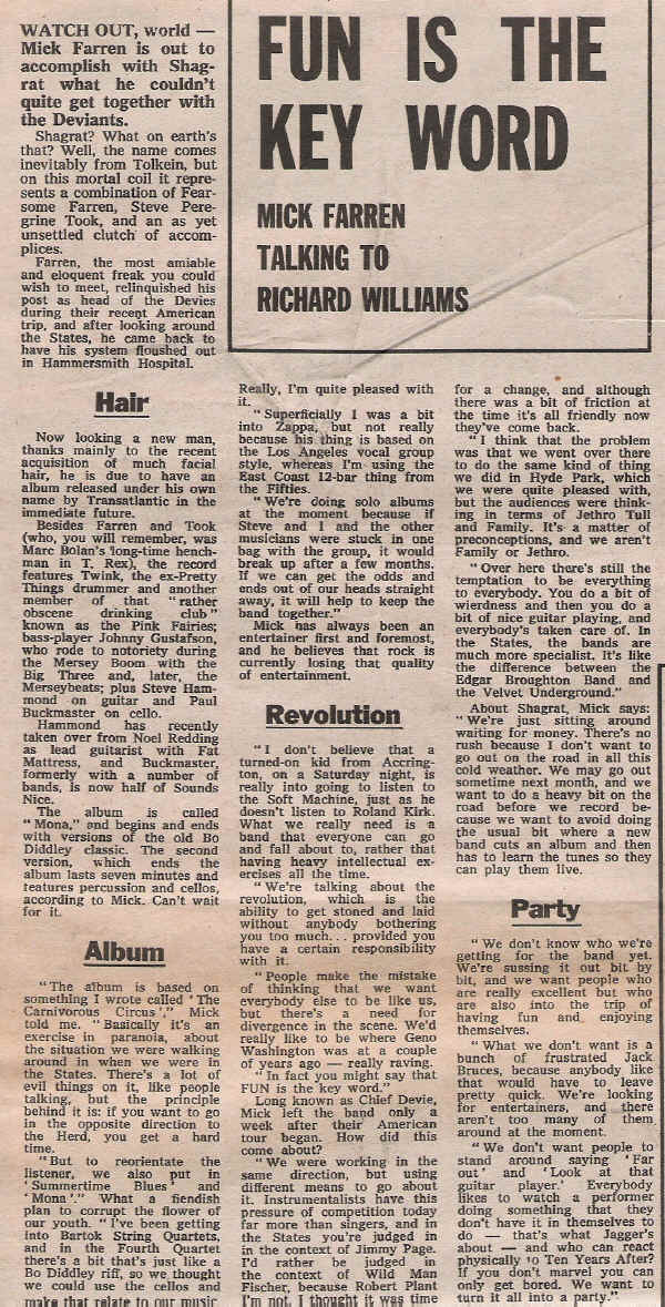 London Lyceum-Van Der Graaf Generator, Forever More (1st, supporting Spirit), Colosseum, Faces, Juicy Lucy, Gracious etc (6th), Ten Years After, Principal Edwards Magic Theatre, Quintessence (8th), Tyrannosaurus Rex, Taste, Edgar Broughton Band, Liverpool Scene, Fairfield Parlour (13th), Family (15th), Galliard, Pacific Drift, Jan Dukes De Grey, Clark Hutchinson, Egg (22nd), Crazy World Of Arthur Brown, May Blitz, Jody Grind (28th)