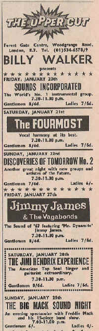 (7th), Jimi Hendrix Experience (17th), The Iveys, Twilights (21st)