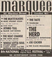 Village, Manchester-Eclection (6th), The Nice (13th), Jethro Tull (20th)