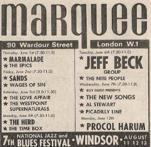 , Uxbridge-Jeff Beck Group (3rd), Gnomes Of Zurich (9th), Marmalade (10th),