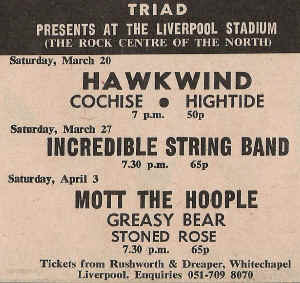 Nottingham Trent Polytechnic- Hawkwind, Idle Race (5th), Terry Reid (19th)