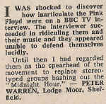 A Whiter Shade Of Pale: I know this...it sounds like hip-type chart music. It's a record that has atmosphere. Now the vocal's started it doesnt sound like chart music. I don't think this is going to be a hit. It's not a bad record but it's rather negative (DJ Pete Murray)