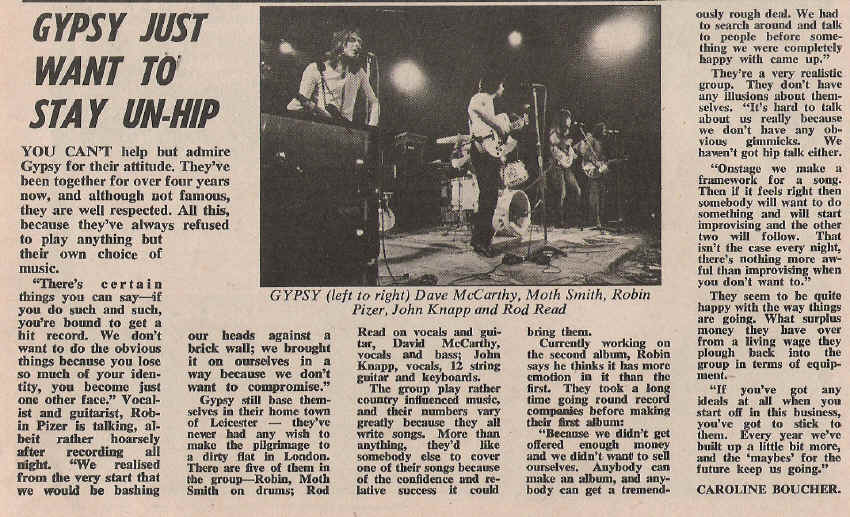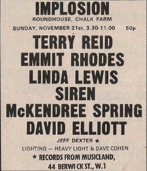Concert- Unicorn (2nd), Brinsley Schwarz, Stone The Crows (16th), Ralph McTell (30th)