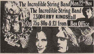 Sheffield City Hall- Fairport Convention (16th), Mungo Jerry (22nd), Alan Bown (27th), Groundhogs, Egg, Quicksand (29th), Soft Machine (30th)