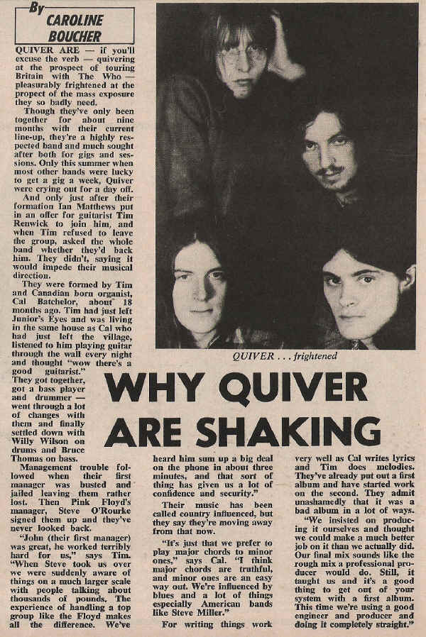 Alan Bown's band undergoes its first personnel changes in four years. Guitarist Tony Catchpole is replaced by Jim Laney, ex-Hate, while bassist Andy Brown is hospitalised with a "serious skin complaint" and is replaced by Dougie Thompson. (Thompson and Bown's saxist John Helliwell are both future members of Supertramp)