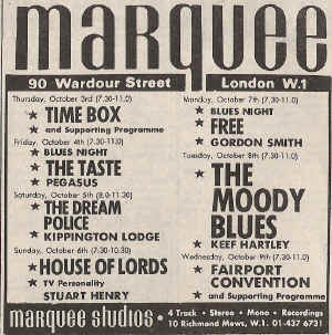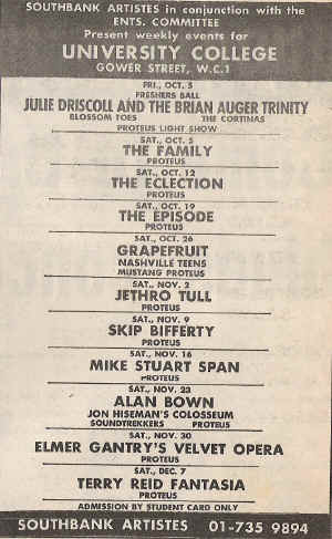 Jug, Tolworth-The Nice (3rd), Jethro Tull (16th), Colosseum (23rd)