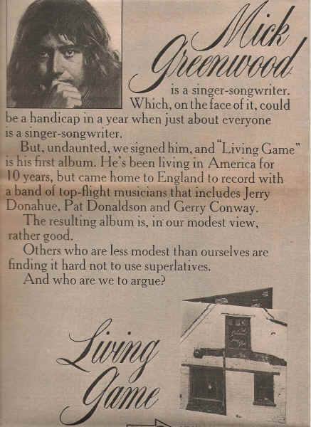 MICK GREENWOOD- The Living Game (MCA)