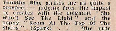 ![]() Unreleased acetate 1967 This rather gloomy tale of mental illness and/or below average personal hygiene is the only surviving evidence of the short-lived songwriting partnership of Ex-Walter Ghoul's Lavender Brigade member Julian Starr and Trent Burton of the ultra obscure Midlands group The Boiled Egg Soldiers. Following the non-appearance of the song, Starr went to the USA and became a cult figure in New Orleans. Burton moved into accountancy before becoming a House-husband when he finally found a house willing to marry him.